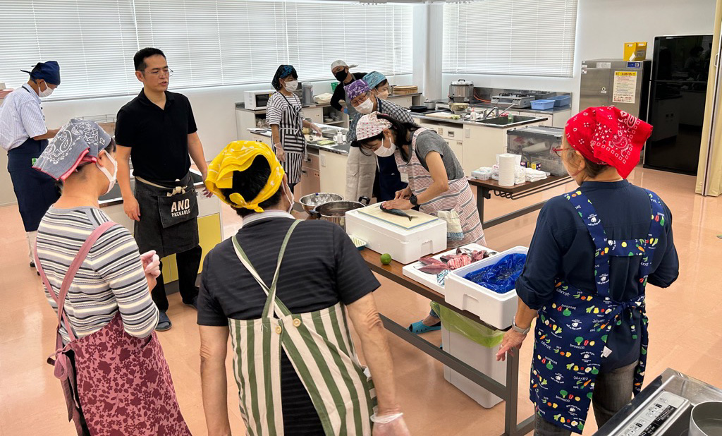 伊東市生涯学習課が実施する市民大学講座とコラボし、10月9日・16日・23日の3日間にわたり「お魚の捌き方教室」を開催しました。約15名の方にご参加いただきました。