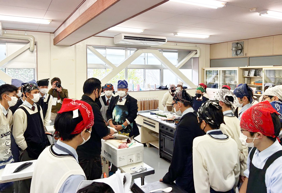 令和8年1月21日、静岡県立熱海高等学校の約35名を対象に「お魚の捌き方教室」を開催しました。